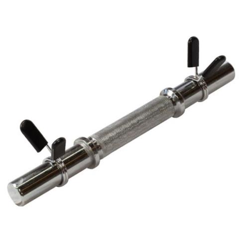 Deze dumbellstang met veersluiting is 35 cm lang is geschikt voor alle losse gewichten met een diameter van 30/31 mm. De schijfopnamedelen zijn 10 cm per kant.
