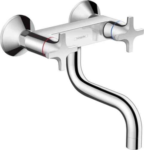 Winkelverkoopprijs € 184 Hansgrohe Logis Classic tweegreeps keukenmengkraan wanduitvoering met onder uitloop, chroom