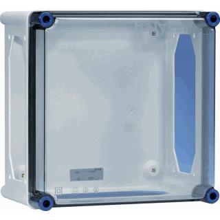 Eaton Industries Halyester R railkast, (hxbxd) 270x270x171mm, nom. (meet-)stroom railsysteem 1000A, behuizing kunststof, aanbouwmogelijkheid, beschermingsgraad (IP) IP66, kortsluitvastheid (Icw) 32kA, met transparant deksel, 5 polen, kast/pasvlak schema 433D, 4openingen