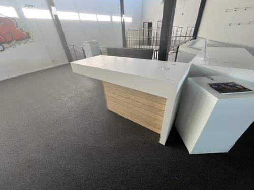 1 houten display tafel, ca. 2 x 0,8 mtr