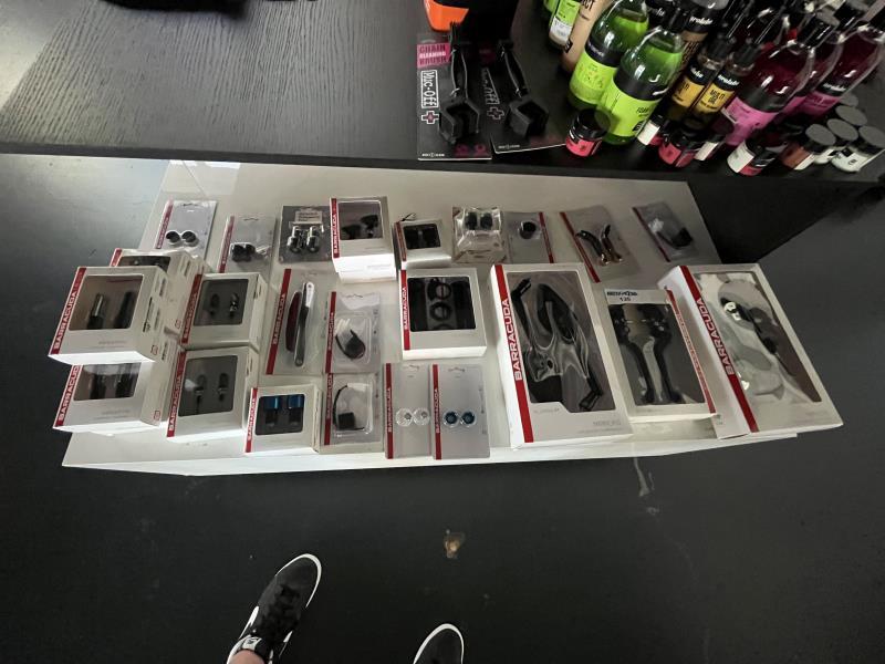 1 partij Barracuda motoronderdelen w.o.: spiegels, knipperlichten, grips, rem/koppelingsgrepen etc.