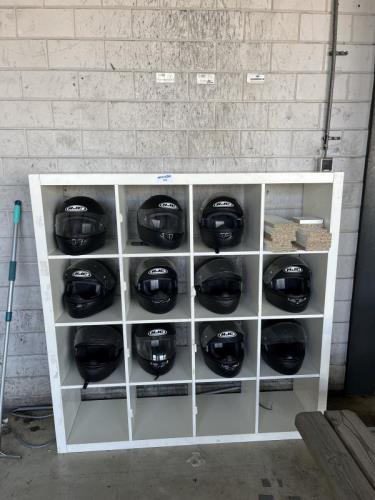 1 vakkenkast met 11 helmen