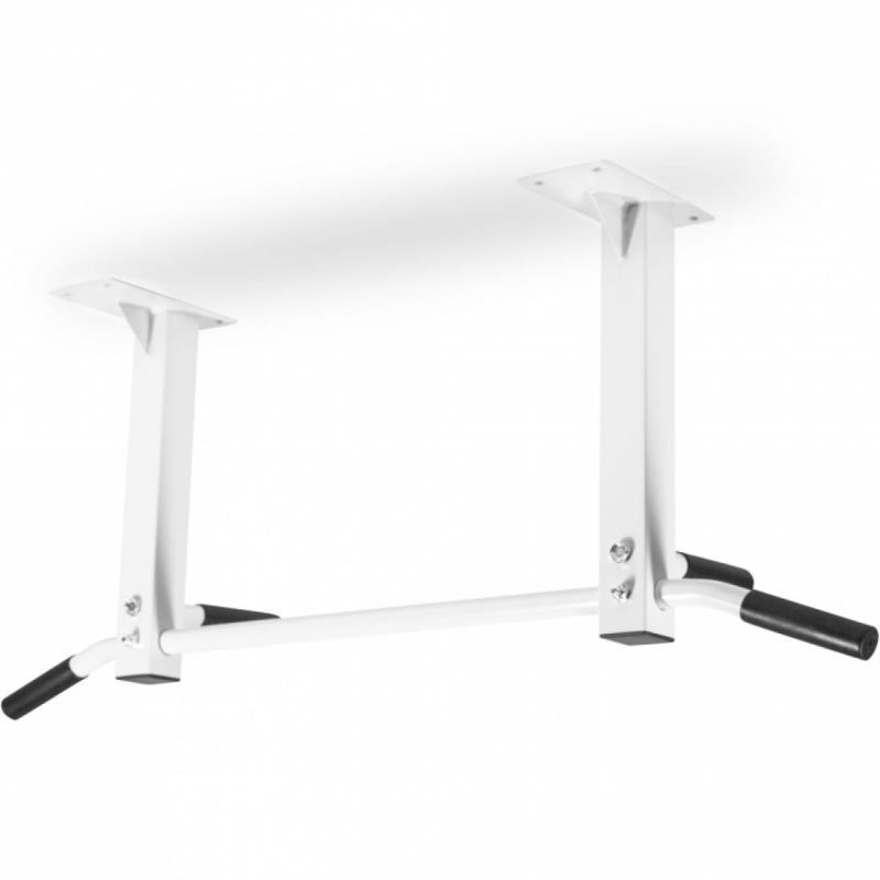 De optrekstang wit (Dakmontage) in detail: Geschikt voor plafondmontage Maximale belastbaarheid tot 350 kg Afmetingen (L x B x H): 97 x 50 x 20 cm Afstand tot het plafond: 39 cm Afmeting bevestigingsplaat (LxB): 19,5 x 9,5 cm Afstand tussen de bevestigingsplaten: 49,5 cm Diverse grepen voor verschillende oefeningen Comfortabele grip dankzij de zachte handvatten Inclusief bevestigingsmateriaal Met deze Chin up bar kun je talloze oefeningen uitvoeren, waaronder pull-ups, chin-ups, hanging knee raises en leg raises. Hierdoor kun je je spieren op een effectieve manier trainen en je kracht en conditie verbeteren. Combineer deze pull-up bar bijvoorbeeld met onze halterschijven en dumbbells voor een complete workout!