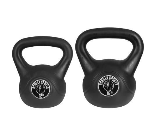260 - 982 : VOORDEELSET KETTLEBELLS 12 EN 16 KG ZWART KUNSTSTOF