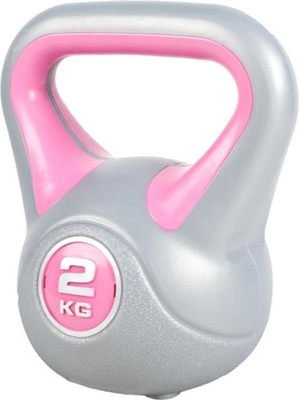 roductKettlebell 2 kg Kunststof Trendy GebruikVoor gebruik thuis (let op: het formaat is aanzienlijk groter dan dat van gietijzeren kettlebells, ook de handgrepen van kunststof kettlebells zijn dikker) Gewicht2 kg Afmetingen(L x B x H) ca. 11 x 11 x 18 cm, omtrek handgreep ca. 4 cm, lengte handgreep ca. 16 cm MateriaalKunststof met cement vulling KleurGrijs/roze GewichtsaanduidingJa ✔Platte onderkant voor extra stabiliteit ✔Kettlebell training: bewezen zeer effectieve klassieke Russische trainingsmethode ✔Train je benen, armen, schouders, buikspieren, rug kortom je hele lijf, met de diverse oefeningen ✔Bouw naast spiermassa conditie, flexibiliteit en uithoudingsvermogen op en val af door het grote cardio aspect