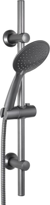 De doucheset 3 standen deluxe gun metal heeft een handdouche met een diameter van 10 cm en 3 straalstanden: normal, massage en massage–mix. Door het stoere gun metal design is deze doucheset een echte toevoeging aan een stoere en moderne badkamer. De speedclean sproeigaten zorgen ervoor dat er geen ophoping van kalkaanslag plaatsvind. Met een doek of je hand verwijder je kalkaanslag met één veeg. Deze waterbesparende doucheslang is gemaakt van PVC met een gladde buitenkant zonder omvlechting en heeft een lengte van 1.5 meter. De douchestang van 54 cm heeft verstelbare wandhouders en in hoogte– en positie verstelbare ophang haak