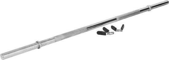 Deze Halterstang is 120 cm lang, weegt 7 kg en heeft een diameter van 30 mm. De stang is gemaakt van hoogglans verchroomd rondstaal en is van echte sportschoolkwaliteit. De stang wordt geleverd met 2 veersluitingen en is ideaal voor grote oefeningen als squatten, deadliften en bankdrukken.
