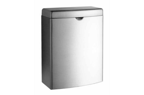 Winkelverkoopprijs € 45 Bobrick B 270 RVS mat vuilnis / hygiënebak met klapdeksel. Inhoud: 3, 8 liter. Met handgreep voor het openen van de klapdeksel.