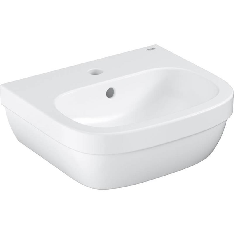 De geweldige GROHE Euro Ceramic wastafel 45 is ideaal voor de moderne badkamer of toiletruimte van nu en combineert een mooie uitstraling met handige afmetingen. De wastafel heeft nette afmetingen van 450mm x 400mm. Het wordt geleverd in glad Alpine Wit porselein voor een slijtvaste afwerking dat zelfs na jarenlang gebruik zijn look behoudt.De GROHE Euro Ceramic-collectie is ontworpen om naadloos aan te sluiten op de GROHE Eurostyle en Eurosmart-kranen om samen een volledige esthetische harmonie te creëren gecombineerd met ultieme prestaties, waardoor het ontwerpproces eenvoudig wordt. Raadpleeg onze GROHE PerfectMatch-app om je te helpen bij het kiezen van de perfecte combinatie voor jouw badkamer. GROHE is de wereldwijde expert op het gebied van in sanitair. Door voor GROHE Ceramic te kiezen profiteer je van die expertise plus de 100 jaar technische uitmuntendheid en expertise van LIXIL, het toonaangevende merk in oppervlaktetechnologie. GROHE Euro Ceramic – een modern, opvallend ontwerp dat perfect aansluit op jouw levensstijl. Ideaal om te combineren met de GROHE Euro Ceramic sifonkap (39325000).