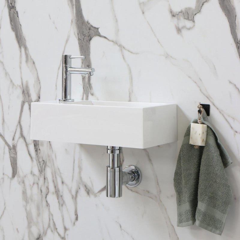 INK Contra fontein 40x10x22cm met kraangat rechts polystone glans wit kopen? Bestel dan dit product van het kwalitatieve merk INK.