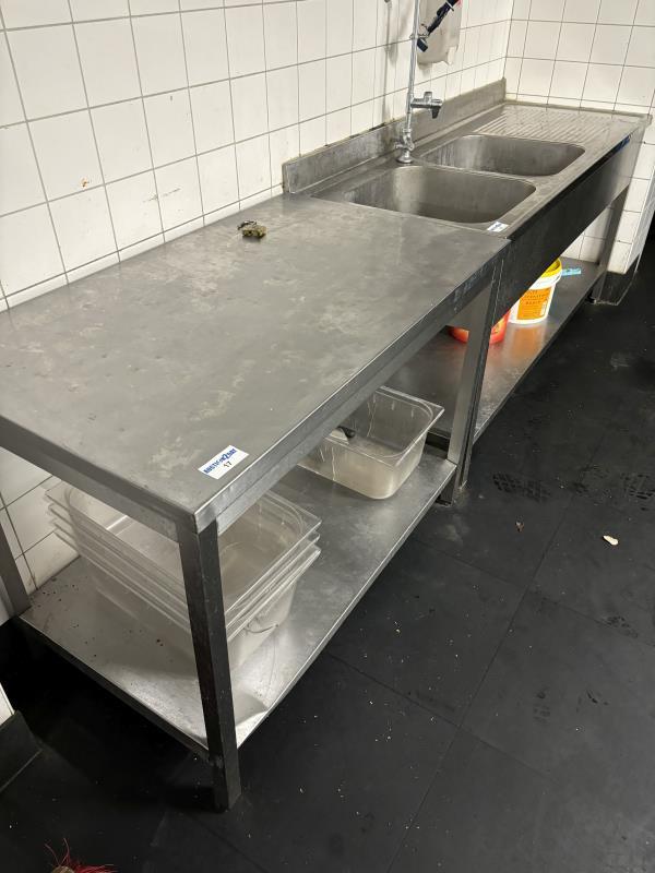 1 rvs tafel, afm. ca. 140 x 80 cm.
