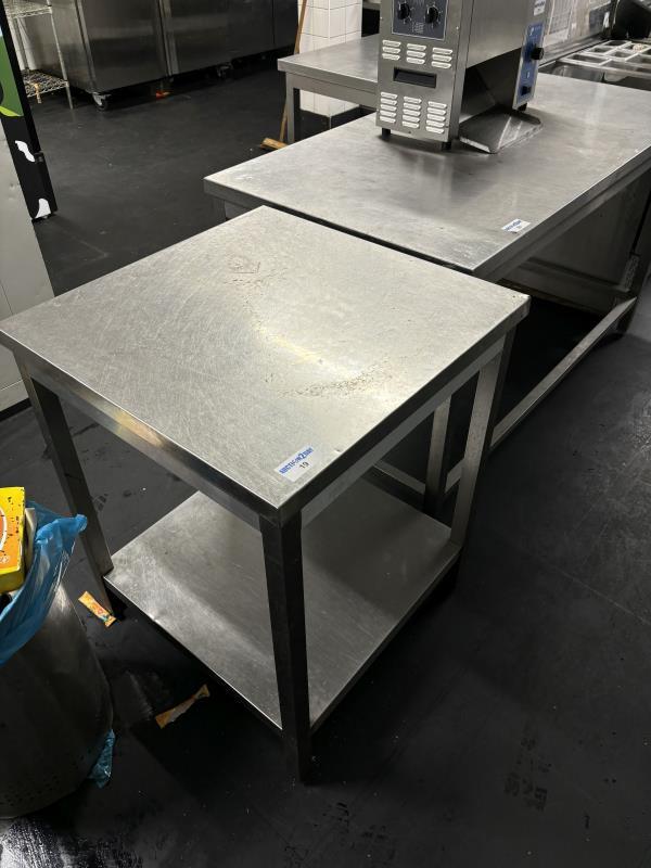1 rvs tafel, afm. ca. 80 x 80 cm.