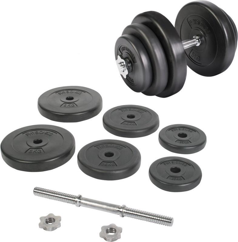 321 - 219 : Physionics - Halter - Dumbbell - Totaalgewicht 20kg - Met Ergonomisch handvat met Grip, Ø25 mm,