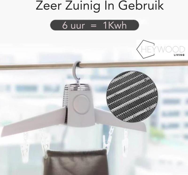 Met deze kledinghanger droog je gemakkelijk hemden, jurken, sokken, blouses, t-shirts en ondergoed. De hanger kan tot 5 kg aan gewicht dragen, schakelt na 3 uur automatisch over naar koude lucht en zet zichzelf na 6 uur uit.