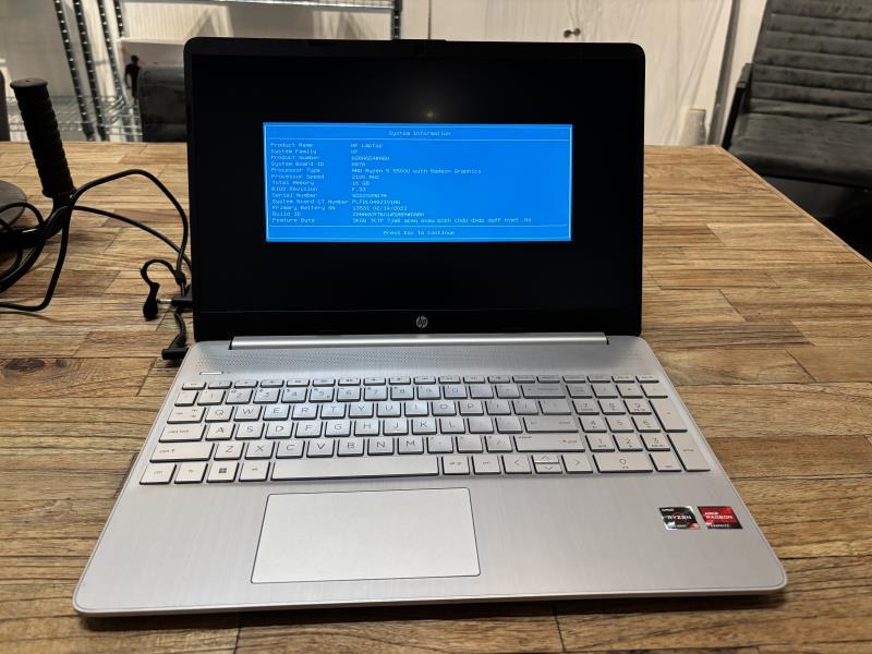 1 HP laptop met AMD RYZEN 5500U processor @ 2,1 GHZ, 16 GB RAM, met lader (Gewist en zonder software)
