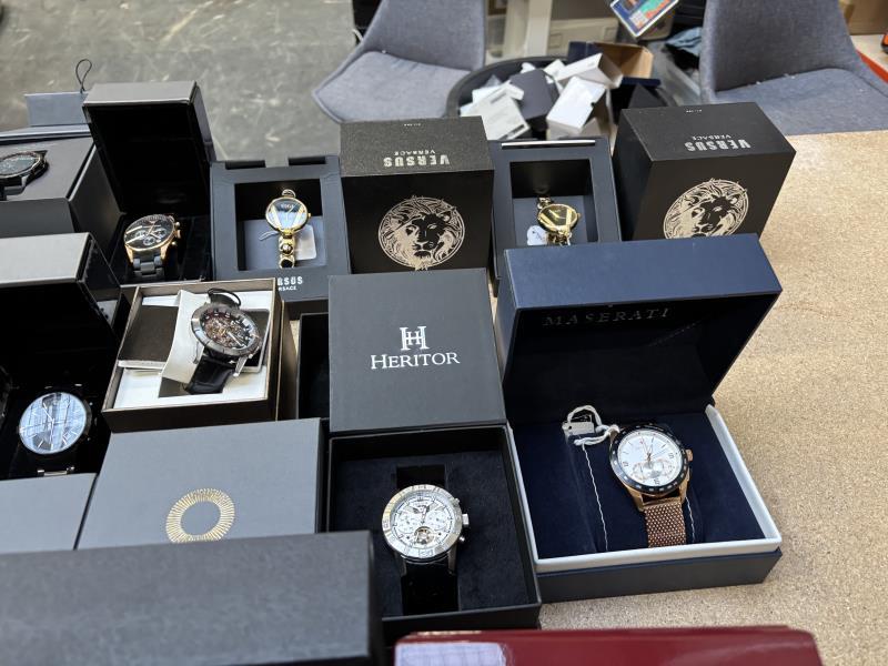 In deze veiling een grote partij horloges w.o. Akribos, Seiko, Versace, Masearati, Hugo Boss, Heritor, Dolce & Gabbana, Cortese, Timex, Armani etc , materialen en kleuren. Dit betreft een partij horloges die deels retourgoederen zijn en deels ter reparatie aangeboden zijn. Wij adviseren u om tijdens de kijkdag de kavels te komen inspecteren.