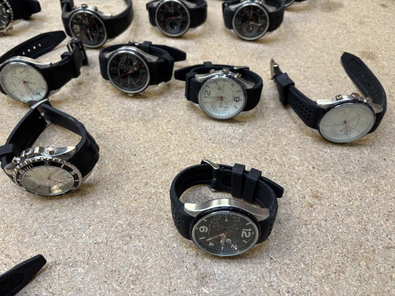 In deze veiling een grote partij horloges w.o. Akribos, Seiko, Versace, Masearati, Hugo Boss, Heritor, Dolce & Gabbana, Cortese, Timex, Armani etc , materialen en kleuren. Dit betreft een partij horloges die deels retourgoederen zijn en deels ter reparatie aangeboden zijn. Wij adviseren u om tijdens de kijkdag de kavels te komen inspecteren.