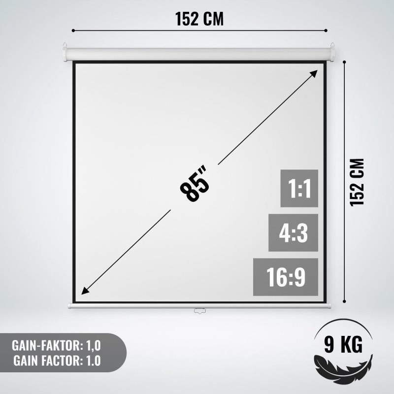 378 - 4 : Jago - Beamerscherm zonder statief – Oprolbaar – Projectiescherm – Projectiedoek - 113 inch - 152 x 152 cm