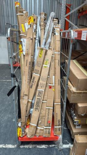 1 rolcontainer met ca. 20 stangen w.o. halterstangen, aerobicstangen etc. (exclusief rolcontainer)