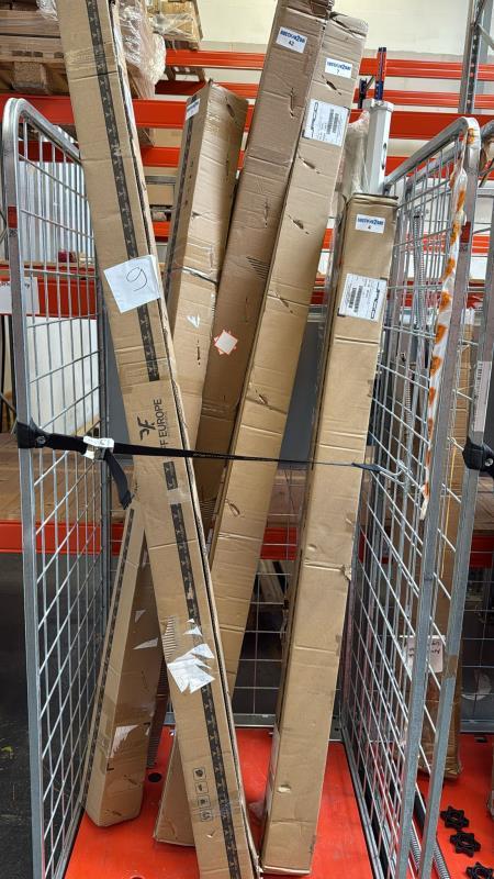 1 rolcontainer met ca. 7 stuks retourgoederen w.o beamerschermen