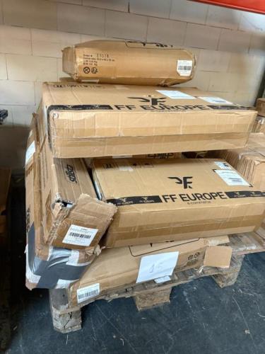 1 pallet met ca. 16 stuks retourgoederen w.o. tafel, tuinkussens wasmand, parasolvoet, buffetwarmers etc.