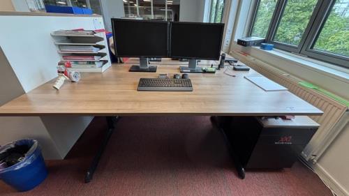 1 i.h.v. bureautafel, afm. ca. 200 x 100 cm. met ladeblok