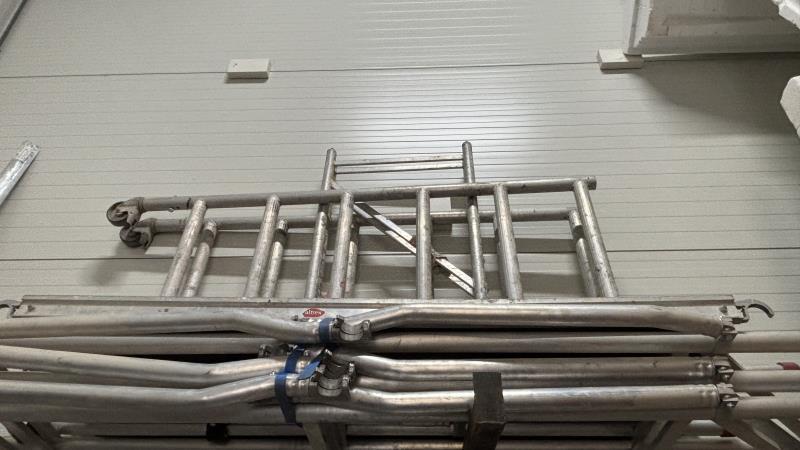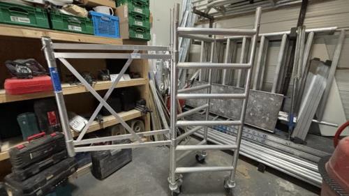 1 grote partij steigermateriaal w.o. Euro scaffold opbouwframes, schoorverbindingen, platform etc en 2 kamersteigers.