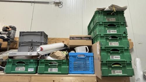 de inhoud van de houten stelling w.o. bevestigingsmateriaal, (hand)gereedschappen, stucbenodigdheden, slijpmachine etc. (m.u.v. de genummerde kavels)