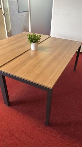 411 - 2 : 1 in hoogte verstelbare tafel, afm.ca 80 x 150 cm.