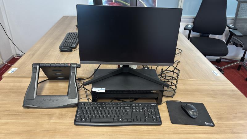 1 Samsung monitor met Fellowes monitor standaard, toetsenbord en muis