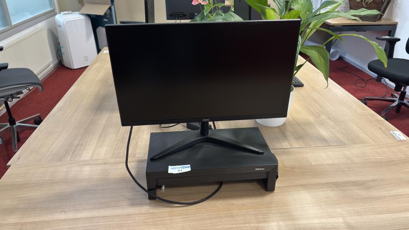1 AOC monitor met Fellowes monitor standaard