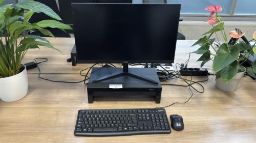 1 AOC monitor met Fellowes monitor standaard, toetsenbord en muis