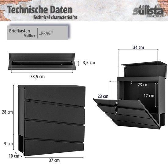 416 - 19 : STILISTA Prague - Staal - Wandbrievenbus - Muur - Met Slot - 37 x 37 x 11 cm - Zwart