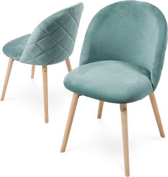 416 - 23 : Miadomodo Eetkamerstoelen - Velvet - Fluweel - Houten Poten - Set van 2 - Turquoise