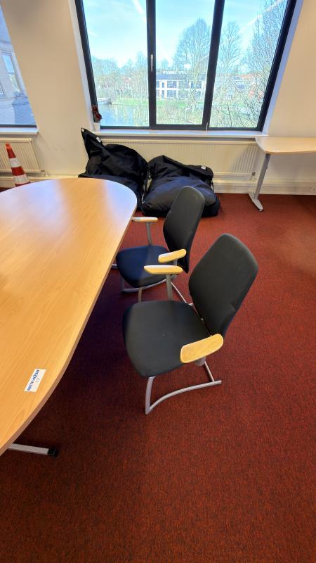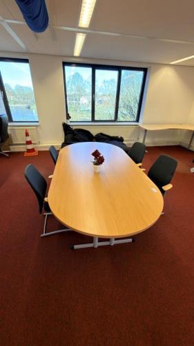 1 ovalen vergadertafel, afm. ca. 240 x 120 cm. met 4 vergaderstoelen