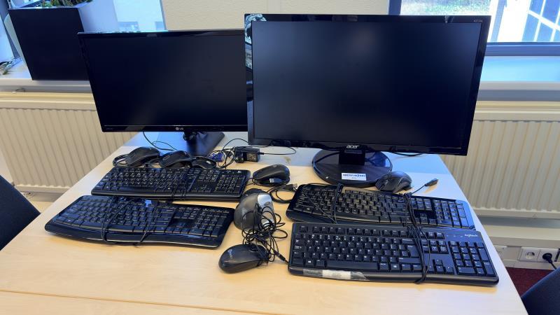 1 Acer monitor met LG monitor, 3 toetsenborden en 7 muizen