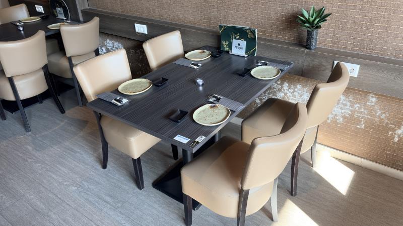 1 restauranttafel met 4 restaurantstoelen met lederen bekleding