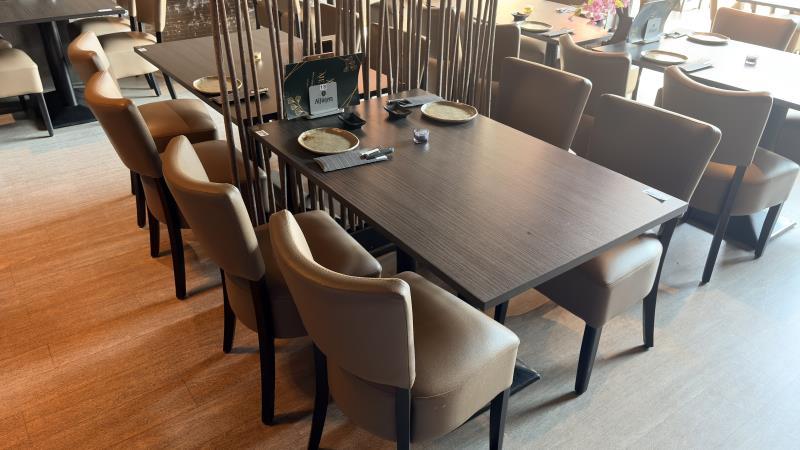 1 restauranttafel met 4 restaurantstoelen met lederen bekleding
