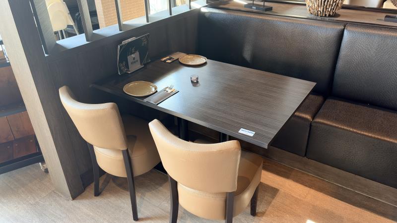 1 restauranttafel met 2 restaurantstoelen met lederen bekleding