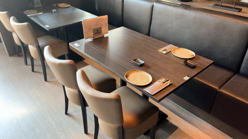 1 restauranttafel met 2 restaurantstoelen met lederen bekleding