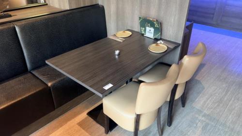 1 restauranttafel met 2 restaurantstoelen met lederen bekleding