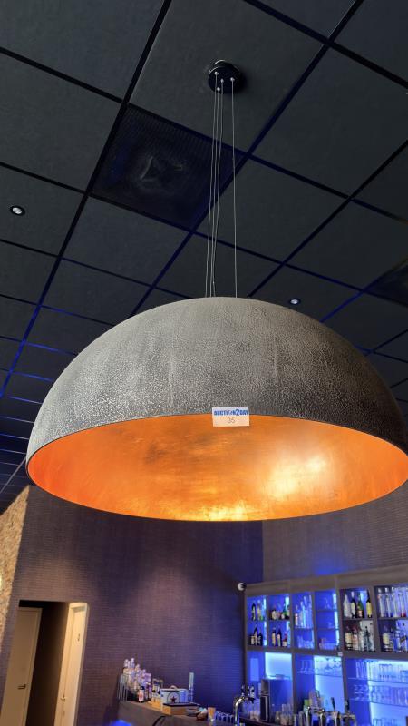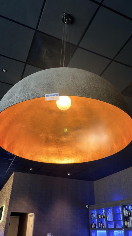 1 grote koepel-hanglamp met koper/goudkleurige binnenkant, diameter 100 cm.