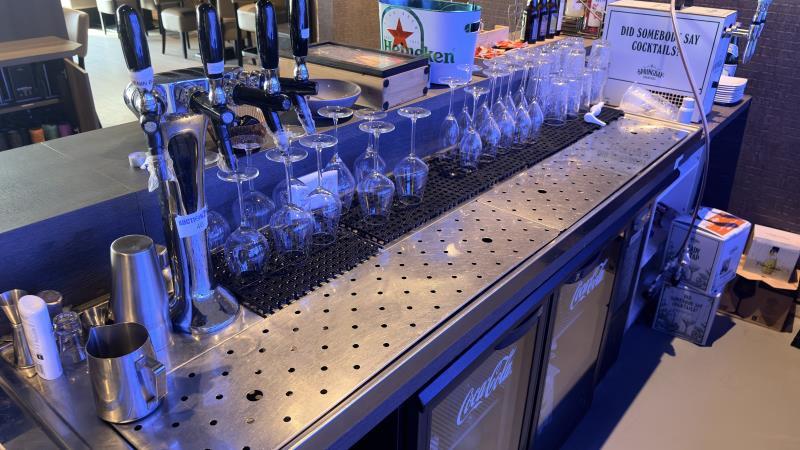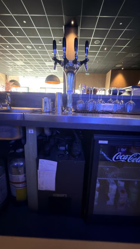 de barwijninstallatie met 4-taps kraan, rvs lekblad, ca. 200 cm.