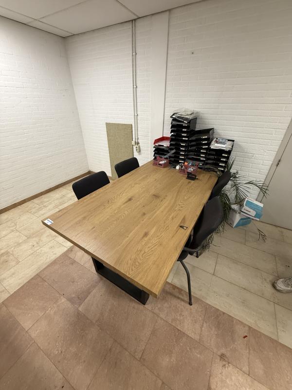 1 vergadertafel met 4 armstoelen, afm 200 x 100 cm