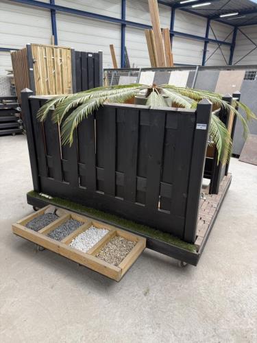 417 - 28 : Verrijdbare display met schuttingdelen en betonpalen
