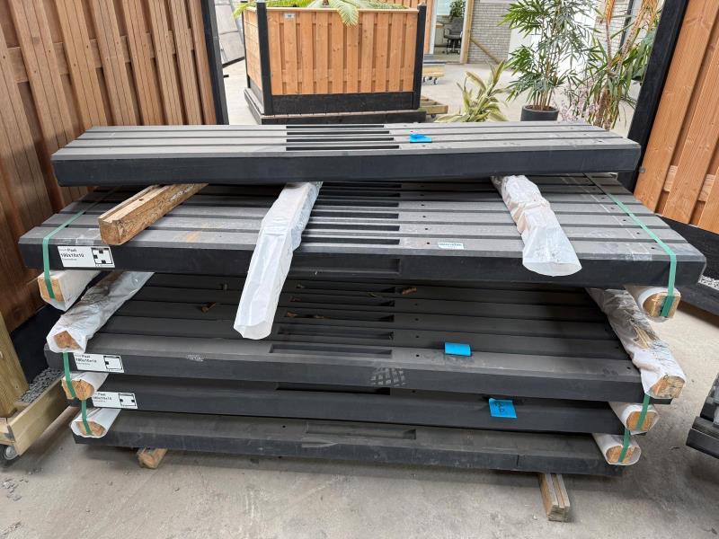 ca. 20 betonpalen, diamantkop, antraciet, 10 x 10 x 190 cm. eindmodel